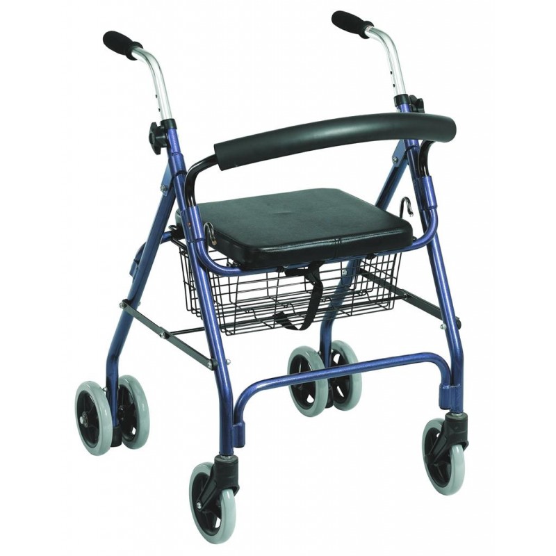 Andador ligero con asiento acolchado y cesta portaobjetos, frenos de maneta | Rollator Classic freno por presión