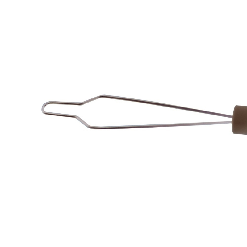 Se compone de un alambre de acero inoxidable y un mango anatómico preparado para una mayor ergonomía del usuario. Para usarlo, pasa el alambre por el ojal de tu prenda y toma el botón desplazándolo por dentro del ojal.