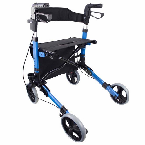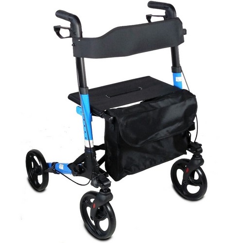 Andador Rollator de 4 ruedas plegable con cesta de tela, frenos, asiento y respaldo “Trajano”