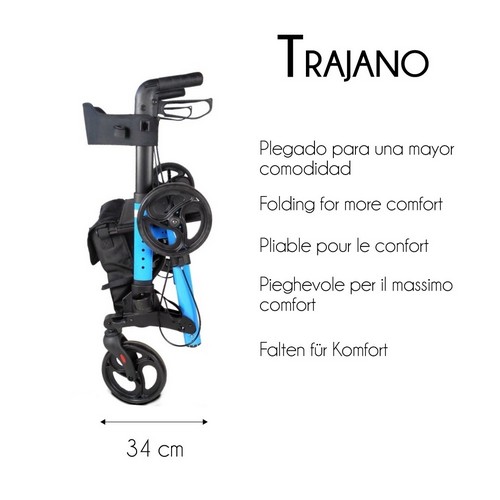 Si tienes problemas para desplazarte y cada vez te cuesta más salir de casa, el andador modelo Trajano es tu solución. Indicado especialmente para personas con movilidad o para personas de la tercera edad, ya que este rollator les proporciona la estabilidad que necesitan gracias a sus cuatro ruedas robustas de 20 cm de diámetro, que tienen bandas reflectantes para mejorar la visibilidad y seguridad por la noche.