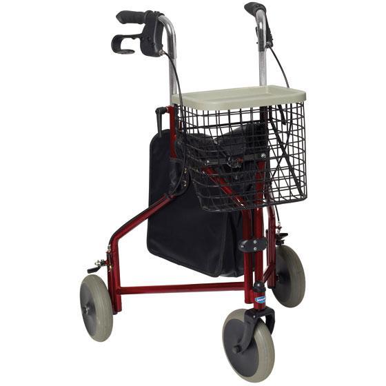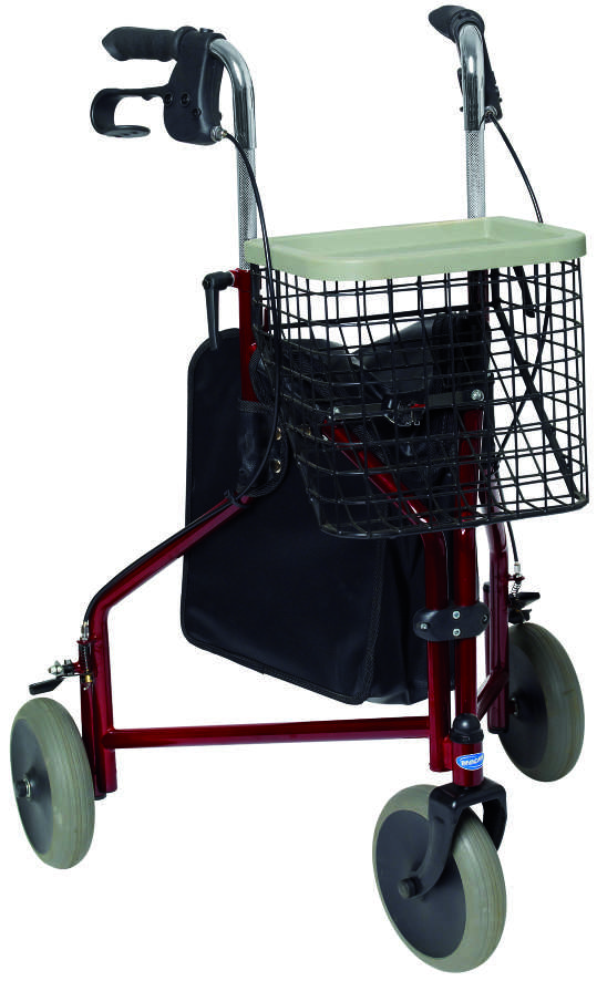 Andador Rollator plegable de 3 ruedas con puños ergonómicos regulables en altura para un mejor soporte, sistema de plegado muy fácil para facilitar su transporte y almacenaje.