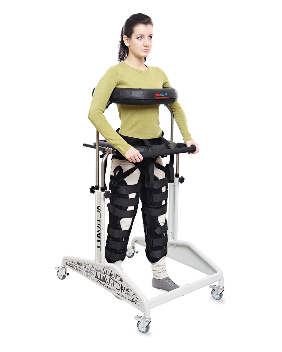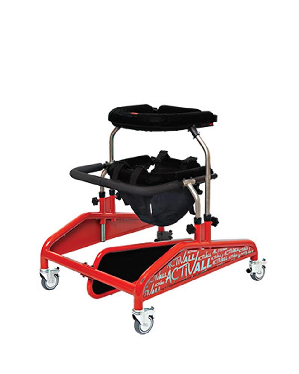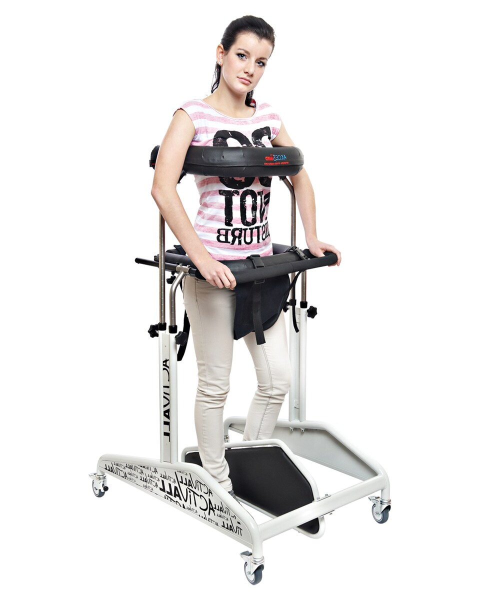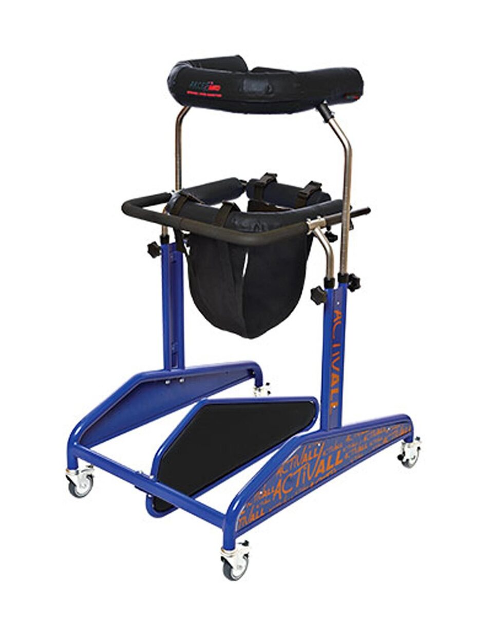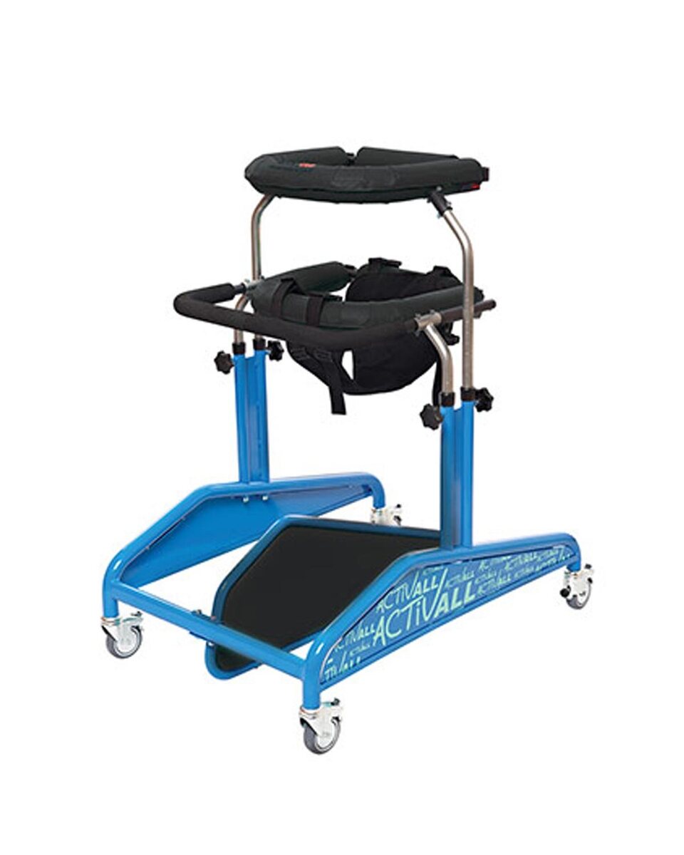 El andador dinámico Activall es un moderno dispositivo de rehabilitación para ser utilizado en terapia intensiva de pacientes con dificultades de movilidad tanto en extremidades inferiores como superiores. Éste permite conseguir y mantener una correcta posición/autónoma. El arnés pélvico y el separador de piernas hacen de este dispositivo especialmente útil para pacientes con extremidades espásticas asociadas a contracturas de las articulaciones de rodilla y pelvis.