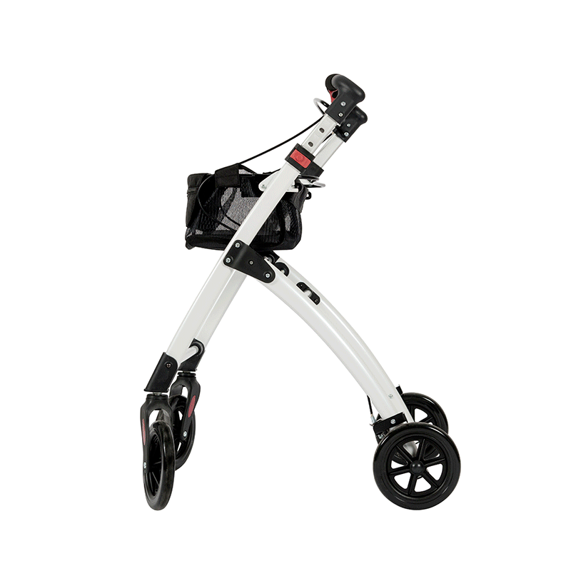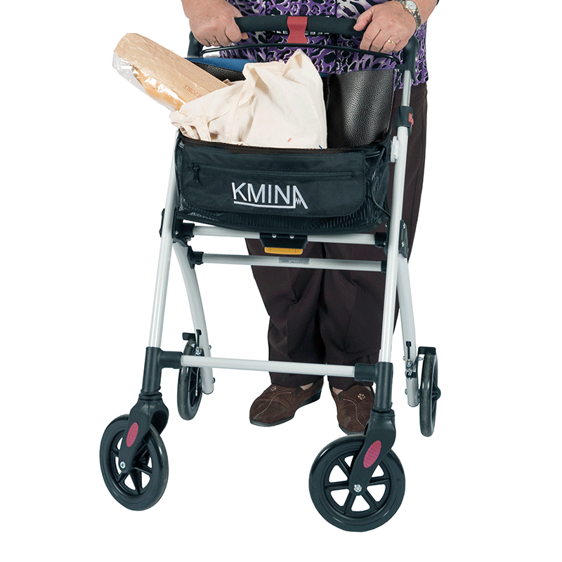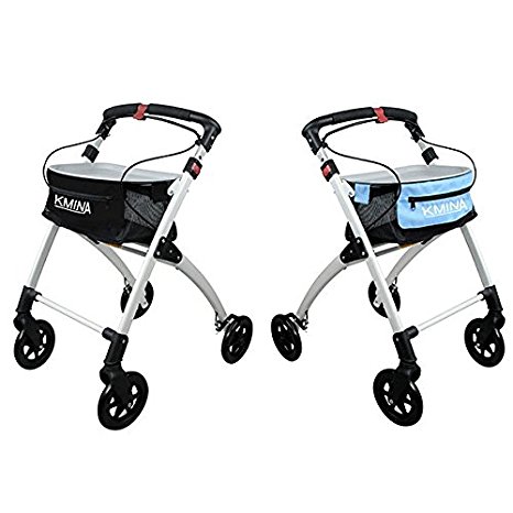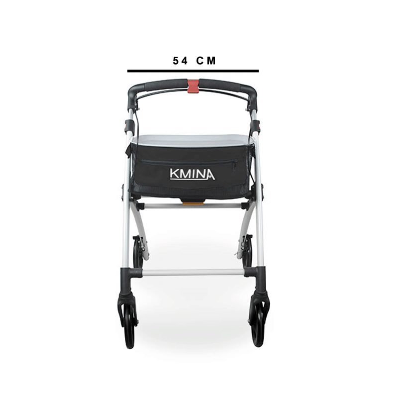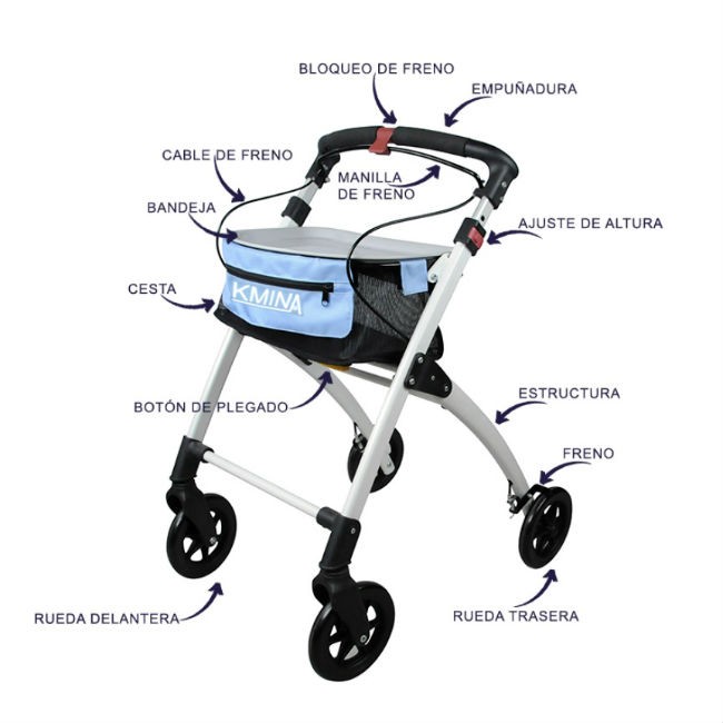 El andador para adultos Kmina es compacto, ligero, plegable, fácil de usar, elegante y cómodo. Al estar fabricado en aluminio y sus cuatro ruedas sólidas le convierten en un andador ligero a la vez que muy seguro y compacto. Incorpora una bandeja, una cesta porta-objetos. Su empuñadura es regulable en altura para mayor comodidad del usuario. Su sistema de frenos es muy cómodo y sencillo de utilizar.