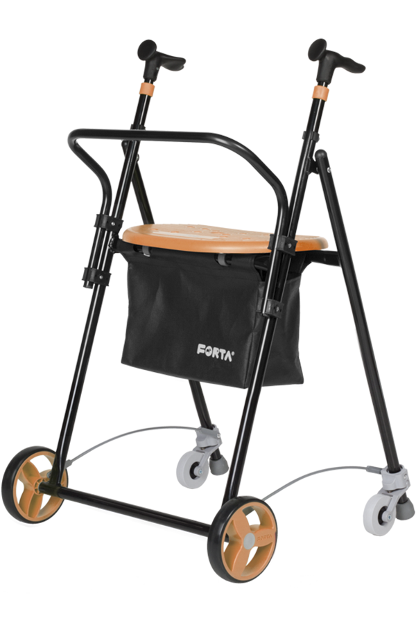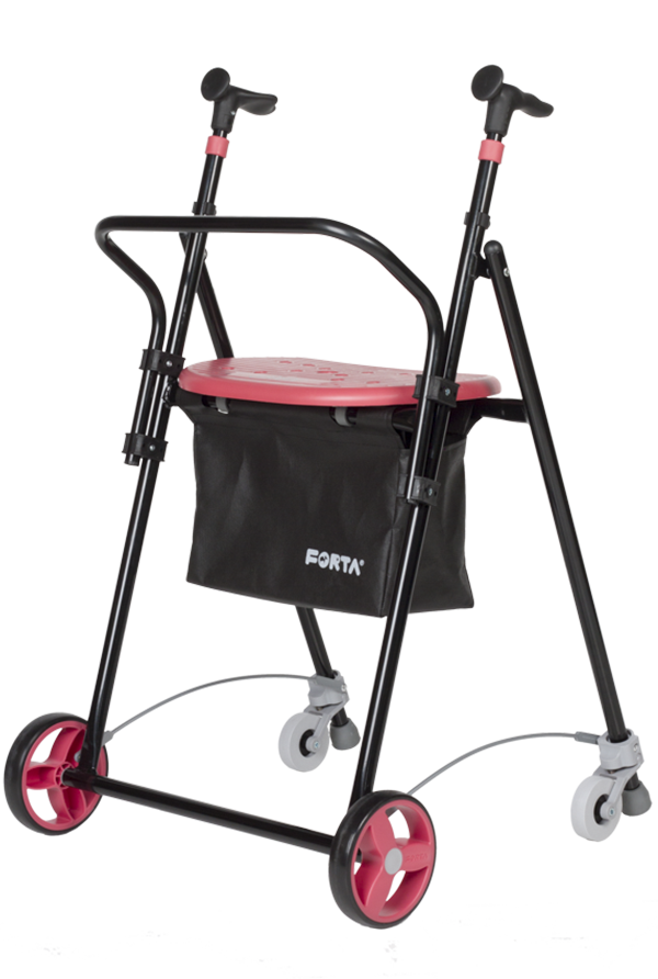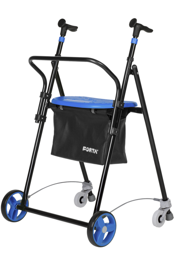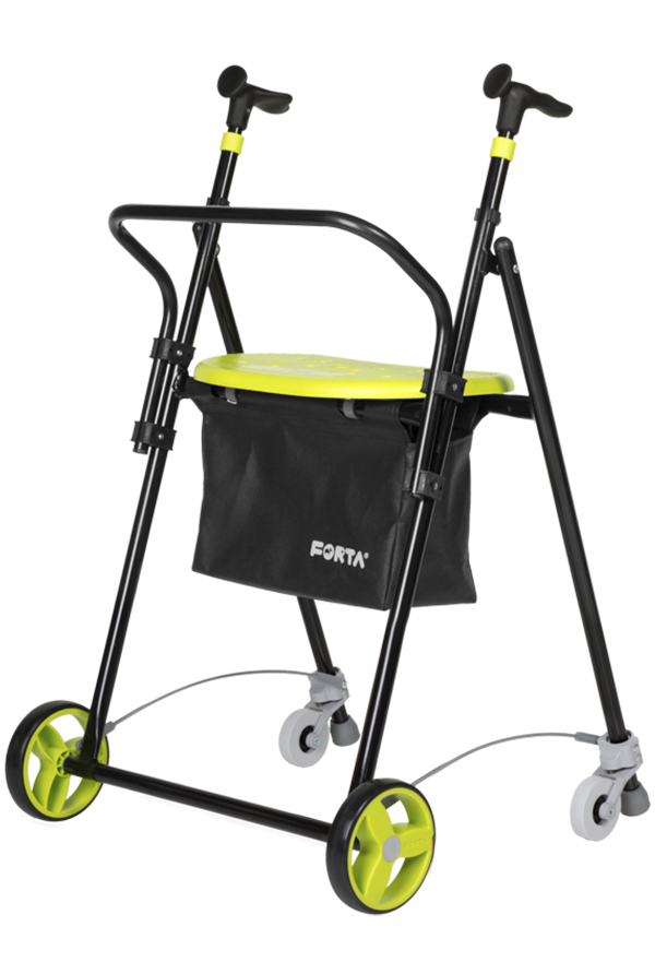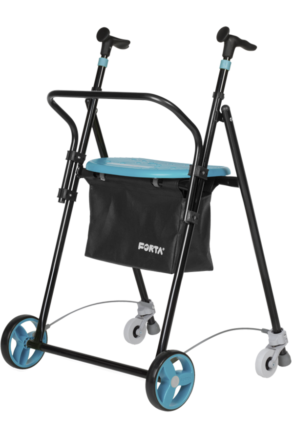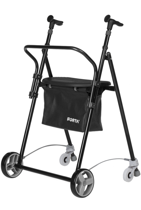 Andador plegable y regulable con asiento, respaldo y cesta de tela AIR-ON Plus