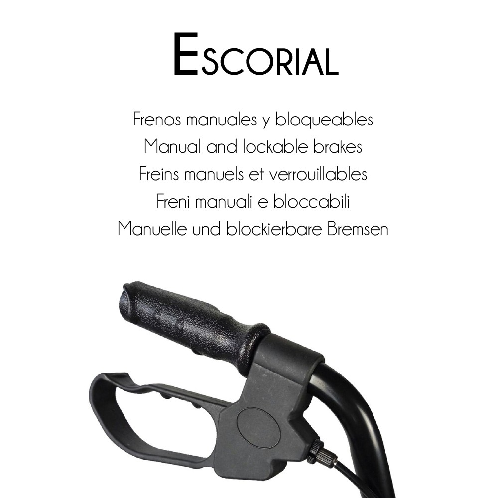 BLOQUEO: Si se necesita inmovilizar por completo el andador, hay que tirar de las manetas de los frenos hacia abajo y las ruedas quedarán bloqueadas. Para desbloquear hay que tirar de las manetas hacia arriba.