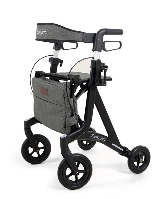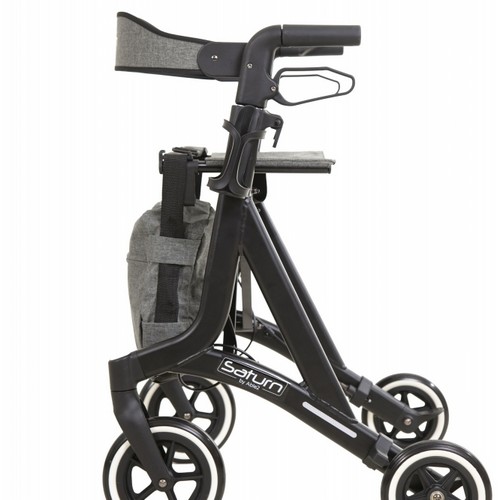 El andador rollator Saturn es un andador de diseño ligero con un aspecto moderno. Con las ruedas suaves es posible moverse confortable en el interior y exterior sobre cualquier superficie. Fácil de plegar a lado por lo que ocupan poco espacio.