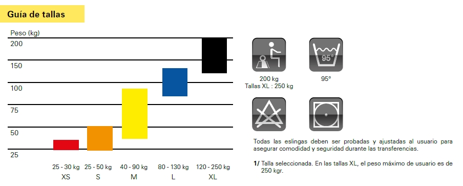 Este modelo tiene, a la altura de la espalda, un segmento reforzado para asegurar una mejor distribución de la presión y mayor comodidad del usuario. Ideal para grúas de elevación. Peso máximo de usuario 250 kg.