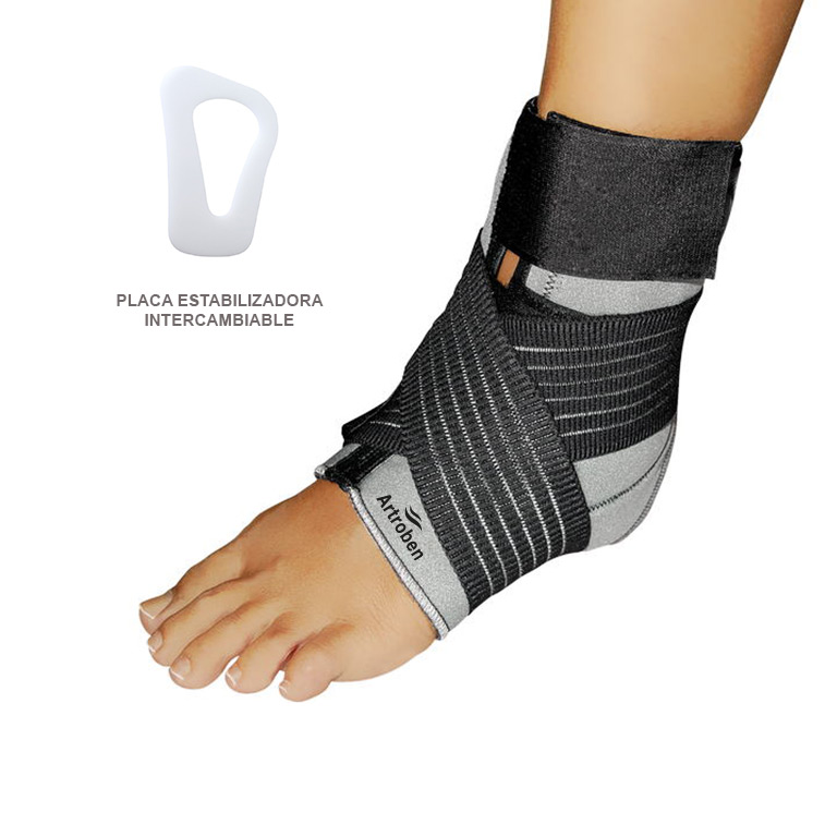 Indicada para el tratamiento de dolores agudos y crónicos de tobillo. Inflamación del tendón de Aquiles. Rehabilitación después de esguinces y lesiones de tobillo. Se ajusta al tobillo mediante cierres de velcro. Su tamaño único hace que se adapte a todos