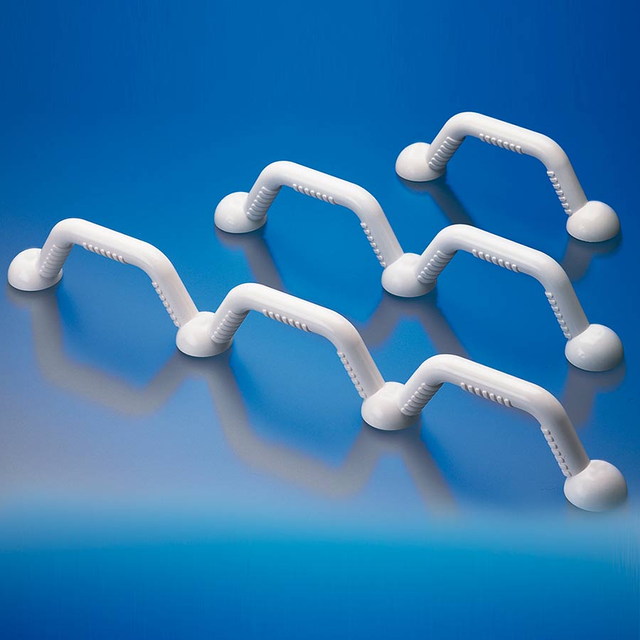 Asideros o barras de baño de varios niveles con 1, 2 y 3 asas. Gama de tres asideros fabricadas en plástico de alta calidad ABS, blanco y con relieve antideslizante.
