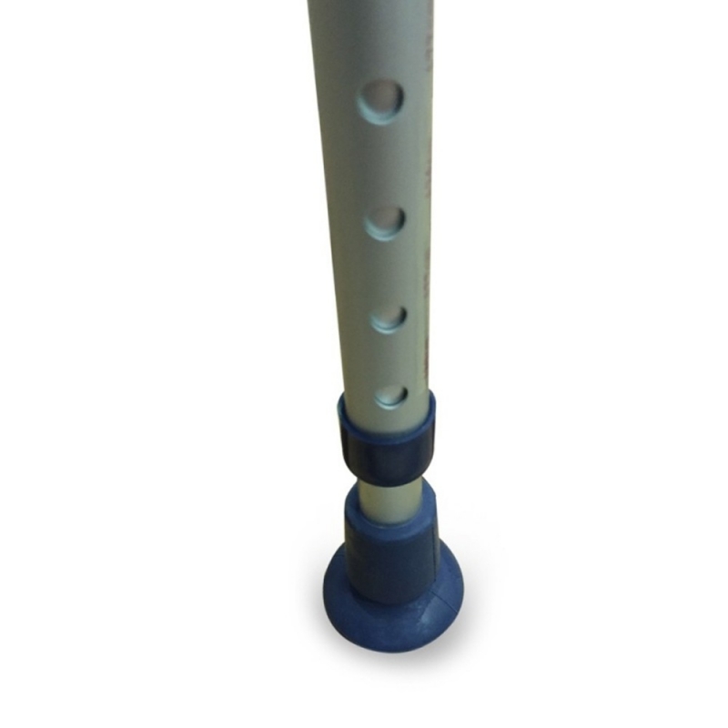 Bastón de aluminio con codera articulada. Regulable en la parte inferior. Color azul y plata.
