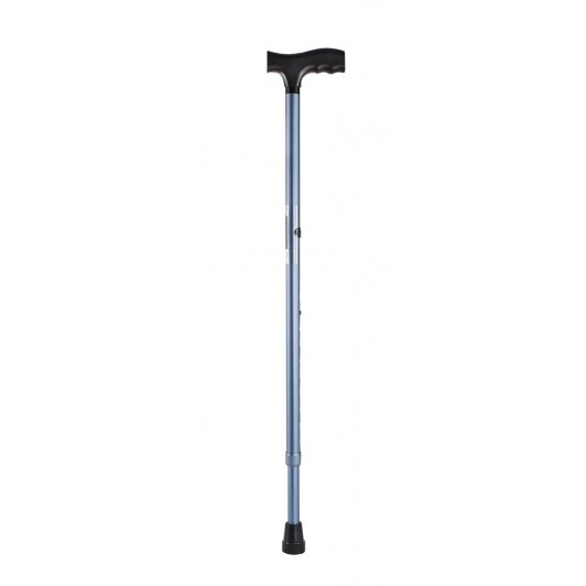 Bastón de aluminio muy ligero y resistente. De altura graduable 77 a 100 cm. con ajuste silenciador que impide el molesto ruido que hacen muchos bastones durante la marcha.