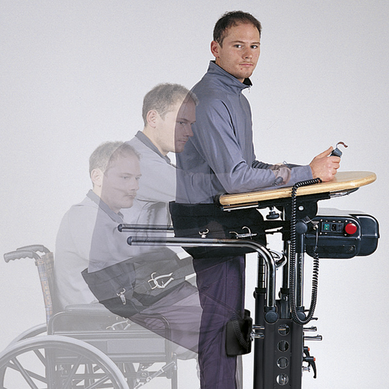 Diseñado para poder ponerse en pie de manera independiente y disfrutar de los innumerables beneficios de la bipedestación, tanto físicos como psicológicos. Este bipedestador es apropiado tanto para el uso doméstico como para instituciones, reduciendo esfuerzos y evitando lesiones de espalda a los cuidadores a la hora de realizar las transferencias de la silla al bipedestador.