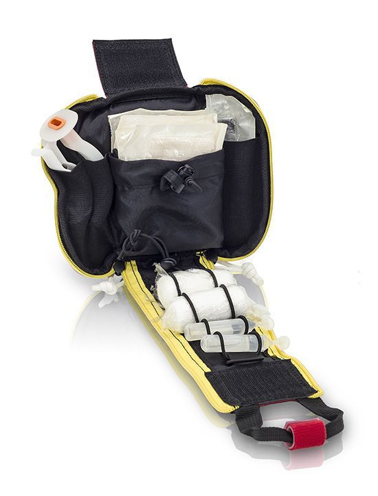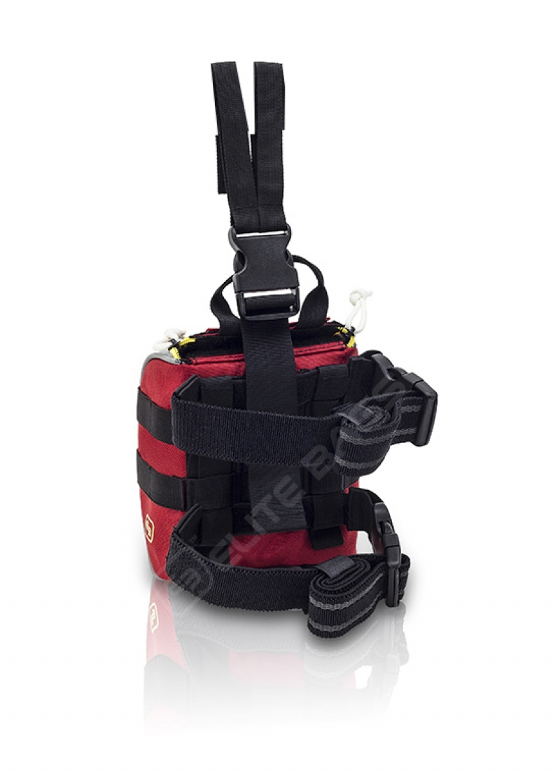 Botiquín de acceso rápido pernera de tamaño medio para la organización del material de curas. Su doble sistema de sujeción, regulable en altura, cuenta con bandas elásticas antideslizantes para ajustarlo a la pierna.