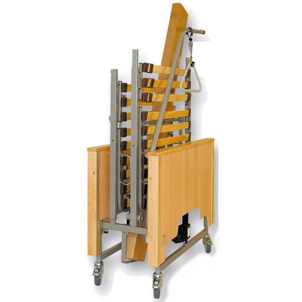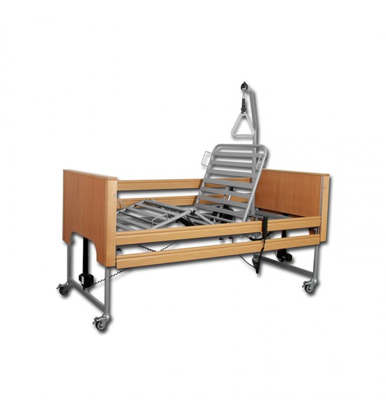 • Compuesto de cama + elevador + cabecero/ piecero, barandillas deslizables de madera e incorporador.