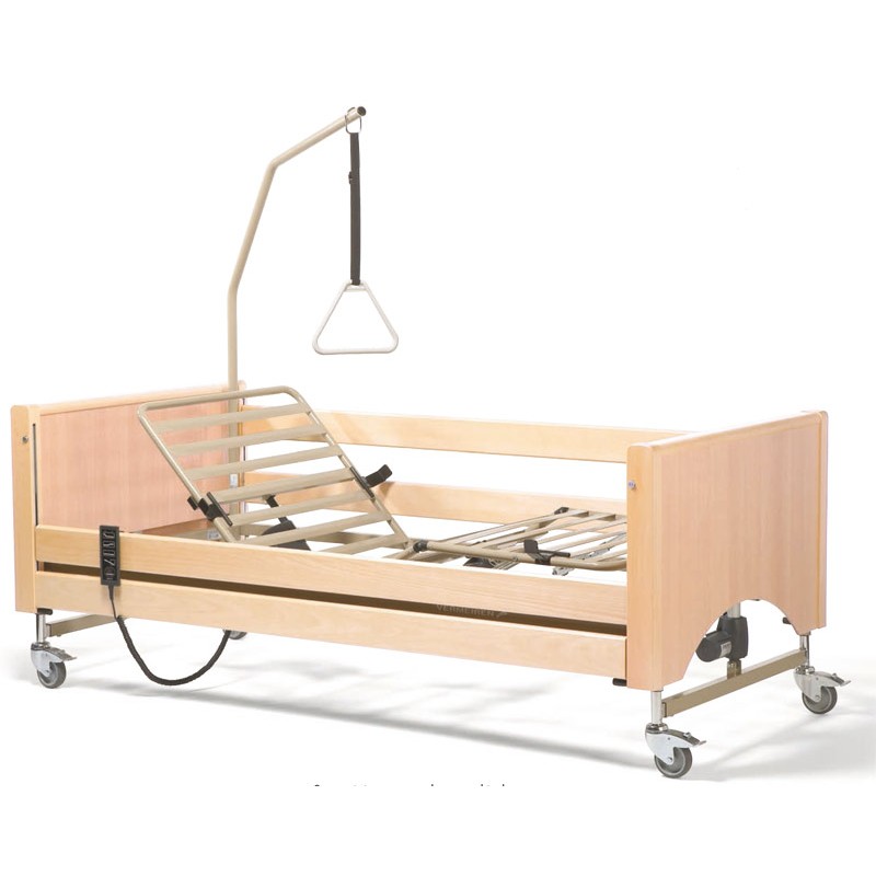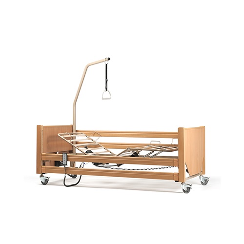 El modelo Luna es una cama eléctrica articulada, elegante, de alta calidad, dividida en 4 planos y cuyas opciones de regulación eléctrica se pueden controlar mediante una unidad de mando manual. El cabecero, el piecero y las barandillas de madera cumplen con un elevado estándar de seguridad. Las 4 secciones multiregulables mejoran la comodidad y su correcto posicionamiento.