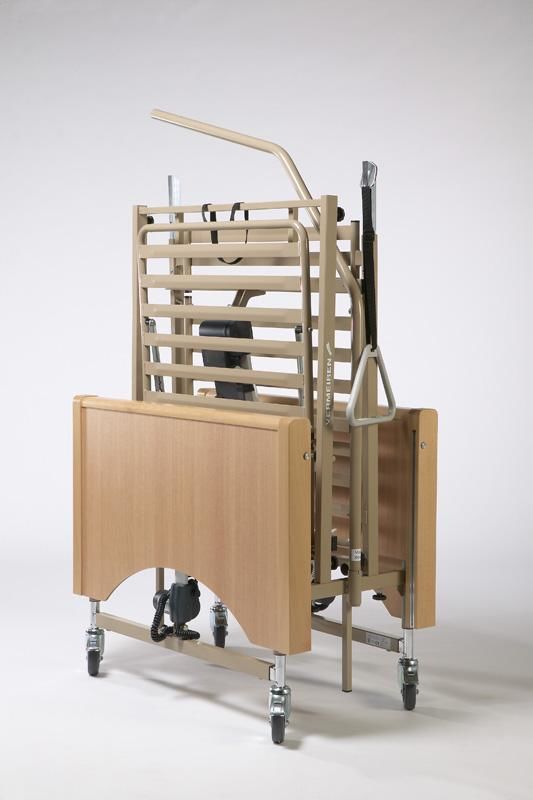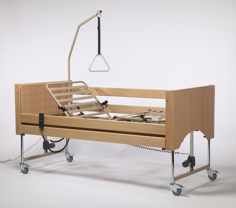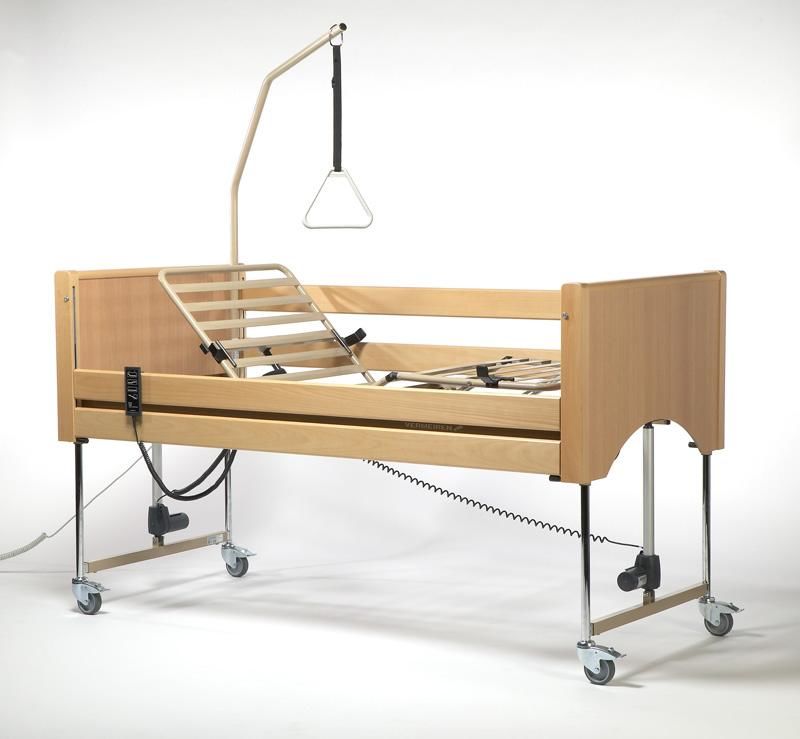 Incluye carro elevador, sistema antitrendeleburg, cabecero y piecero y barandillas de madera y un sistema de montaje y desmontaje muy sencillo y kit de transporte, lo cual es muy útil para usuarios, residencias y clínicas.
