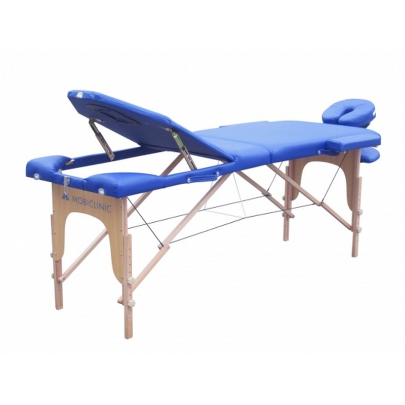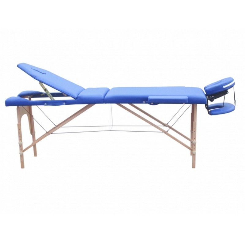 Camilla plegable portátil con reposazabezas | Madera | 186 x 60 cm | Masaje | Azul | CM-01 PLUS