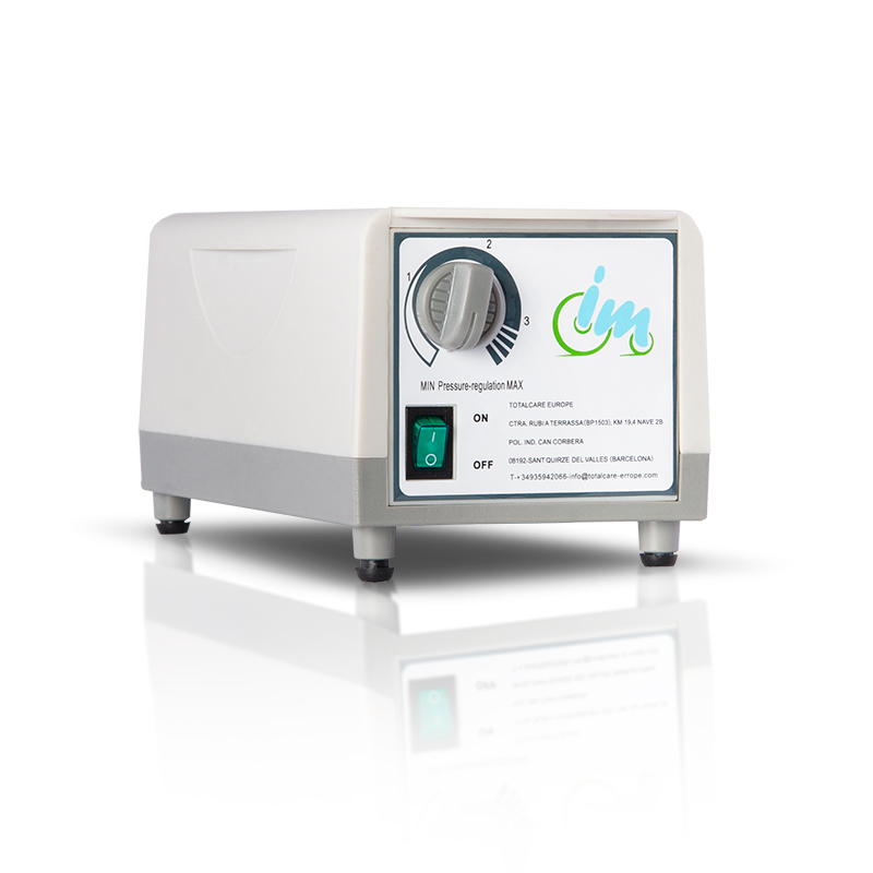 El compresor hincha y deshincha los diferentes compartimentos del colchón realizando una alternancia y cambiando los puntos de presión sobre los que descansa el paciente.