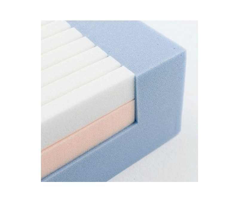 Una estructura en forma de U de espuma de alta densidad azul da soporte y protege al Premier Visco. El corazón del colchón incluye una capa de espuma que brinda comodidad y el inserto de visco en la parte superior para absorber presiones.