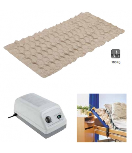 El sobrecolchón antiescaras Eskal consta de dos circuitos de aire independientes que se hinchan de manera alternativa con la ayuda del compresor. Ideal para pacientes que tienen un nivel de riesgo de desarrollo de escaras medio a elevado, con un resultado inferior o igual a 14 según la escala de Norton, guardando cama más de 14 horas al día.