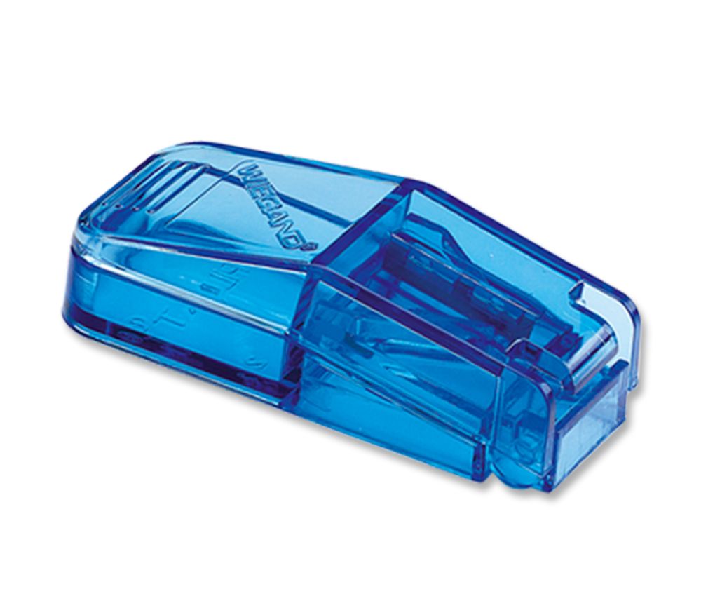 Este práctico corta pastillas tiene una cuchilla de acero inoxidable.