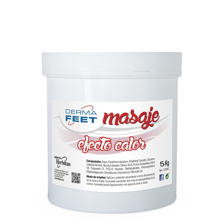 Crema de masaje con efecto calor, en formato bidón de 5kg, elaborada a partir de aceites emolientes ideales para la realización de un masaje completo.