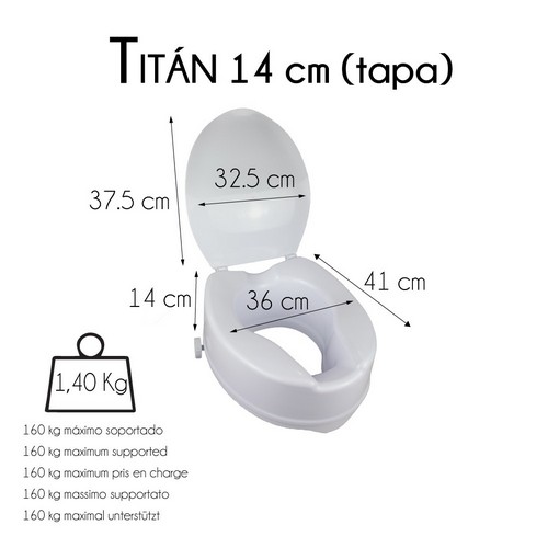 Con este elevador de inodoro con tapa de altura 14 cm las personas con dificultad para incorporarse o levantarse del inodoro tendrán su mayor aliado, gracias a sus 14 cm de altura podrán sentase y levantarse cómodamente. Gracias a su diseño ergonómico no sentirán ninguna molestia ni incomodidad durante su uso, además cuenta con oberturas para facilitar la limpieza de las zonas intimas.