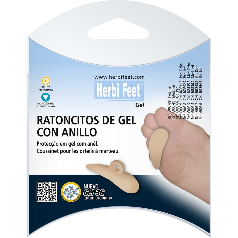 Férula de gel para alivio de dedos en garra o martillo con anillo.