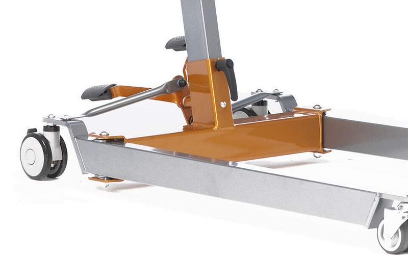 Las patas se abren y cierran presionando el pedal ergonómico con el pie para conseguir una mayor o menor anchura de la grúa.