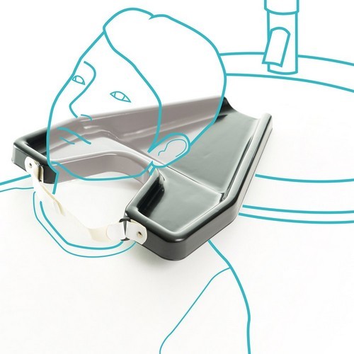 El lavacabezas es una bandeja de plástico muy ligera que se sujeta al cuello mediante una tira de velcro. Permite lavar el cabello en un lavabo, fregadero o cuidador sin derrames.