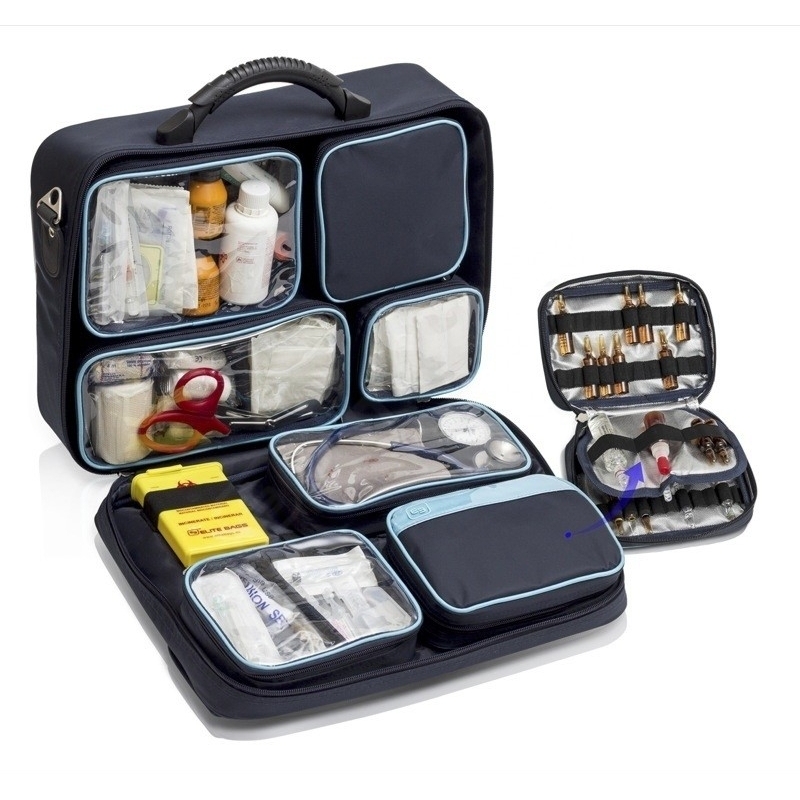 Maletín de asistencia domiciliaria por excelencia. Gracias a su diseño moderno y versátil esta bolsa se encuentra entre las más prácticas del mercado. Con ella el usuario puede organizar cómodamente todo el material médico, permitiendo un rápido acceso, lo que aumenta la eficacia de los servicios al disminuir el tiempo de intervención.