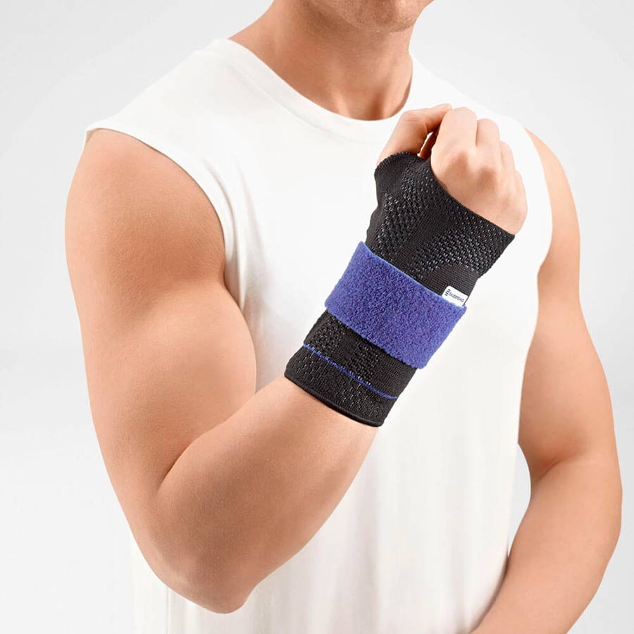 En caso de inflamación de las correderas tendinosas, artrosis de la muñeca o tras una lesión, ManuTrain® descarga la muñeca. Para ello, el tejido activo flexible Train® incluye unas almohadillas que alivian la presión de nervios y vasos y contrarrestan el dolor. Una varilla en el interior de la mano y una cinta elástica estabilizan la muñeca, para que la irritación se cure más rápidamente.