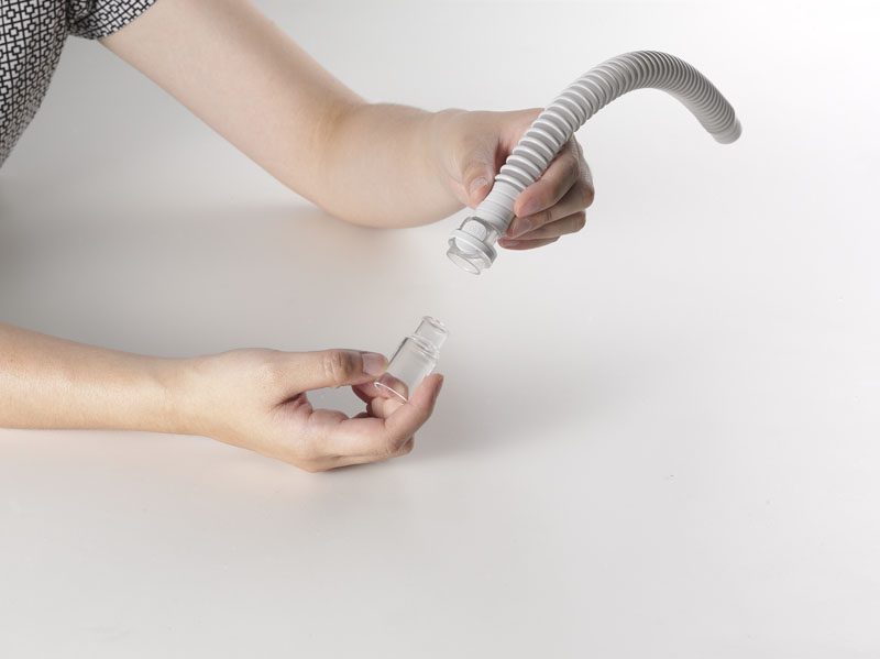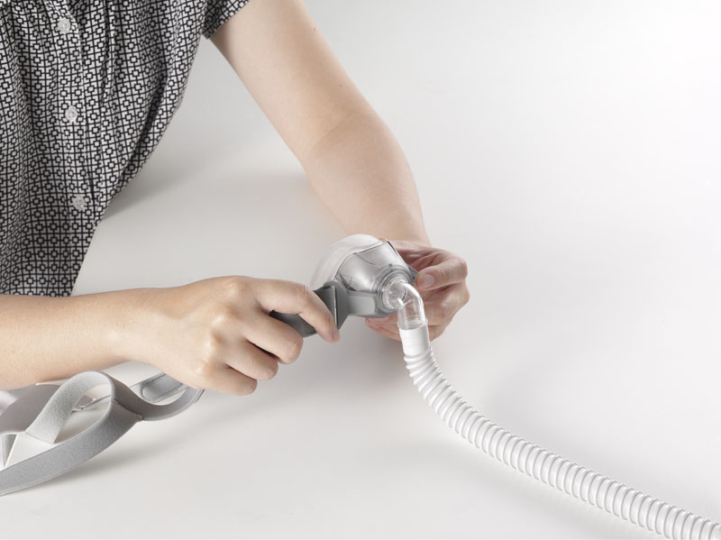 La desconexión de los tubos y máscara puede realizarse en un solo movimiento de forma rápida y sencilla.