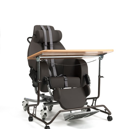 Esta mesa de madera con chasis metálico puede usarse indistintamente con varios productos como sillas geriátricas, sillones descanso y relax, multifunción…