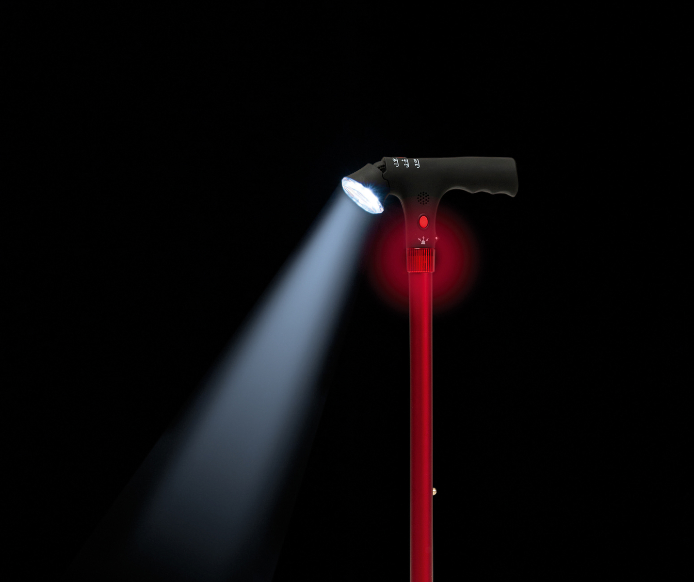 Especialmente indicada para zonas de visibilidad reducida permitiendo al usuario ser visto y oído. Fabricada en material de aluminio y la empuñadura de plástico. Dispone de luz frontal con tres posiciones de enfoque , una luz roja intermitente o fija y función de alarma sonora.