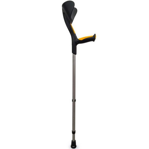 Además, cada muleta es regulable en altura mediante un sistema de clips para adaptarse a la altura del usuario y cuenta con un puño hecho de dos materiales que proporciona una comodidad real al apoyar la mano.