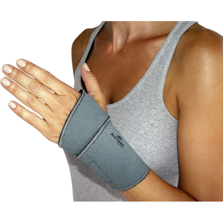 Muñequera B para tendinitis con refuerzo para pulgar Artroben. Indicada para el tratamiento de lesiones traumáticas en la muñeca y mano. Dolores reumáticos y tendinitis. Con refuerzo de pulgar. Ajustable y con cierre de velcro. Material: Grosor neopreno de 2 mm. Talla única.