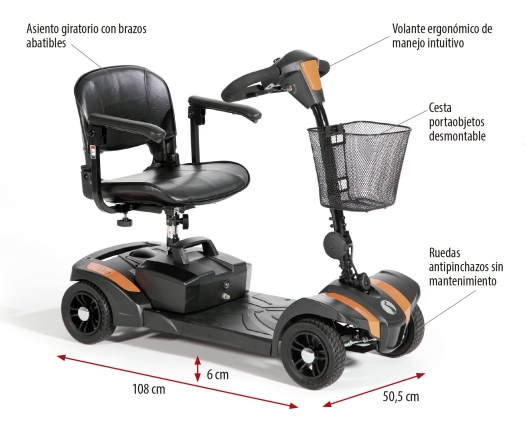 | SP5VEO | 108cm | 50,5cm | 42cm | 6cm | 140cm | 8º o 14,5% | 200mm | 200mm | 270w | 2 x 12v 14Ah | 6,5Km/h | 19Km | 46Kg | 113K |