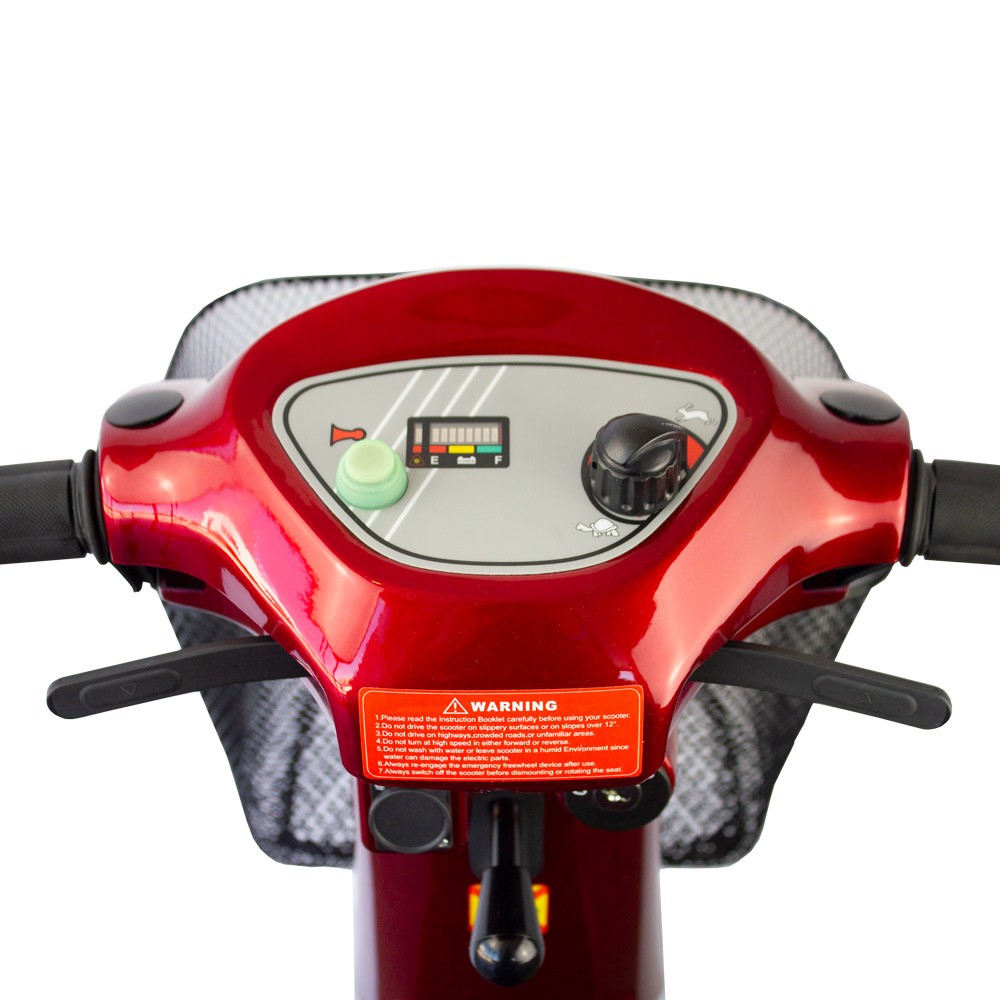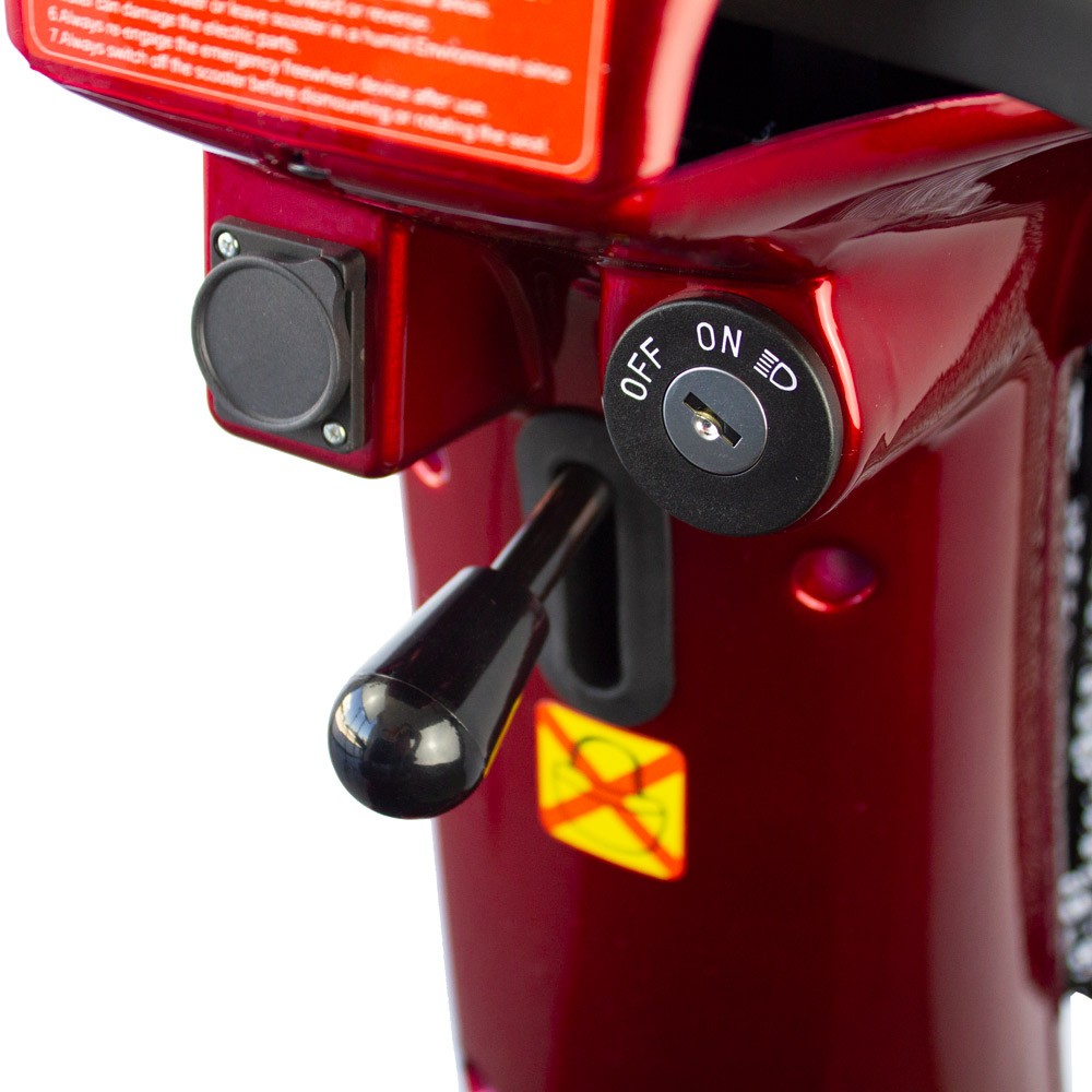 Scooter eléctrico Premium con 4 ruedas plegable, de gran autonomía, color burdeos
