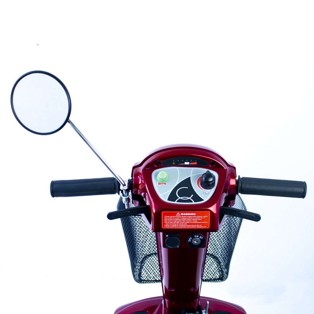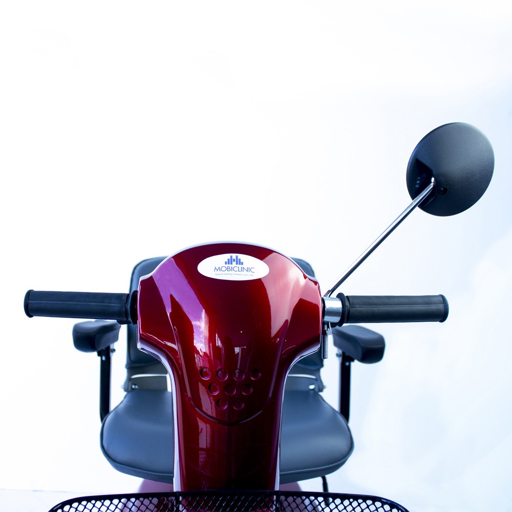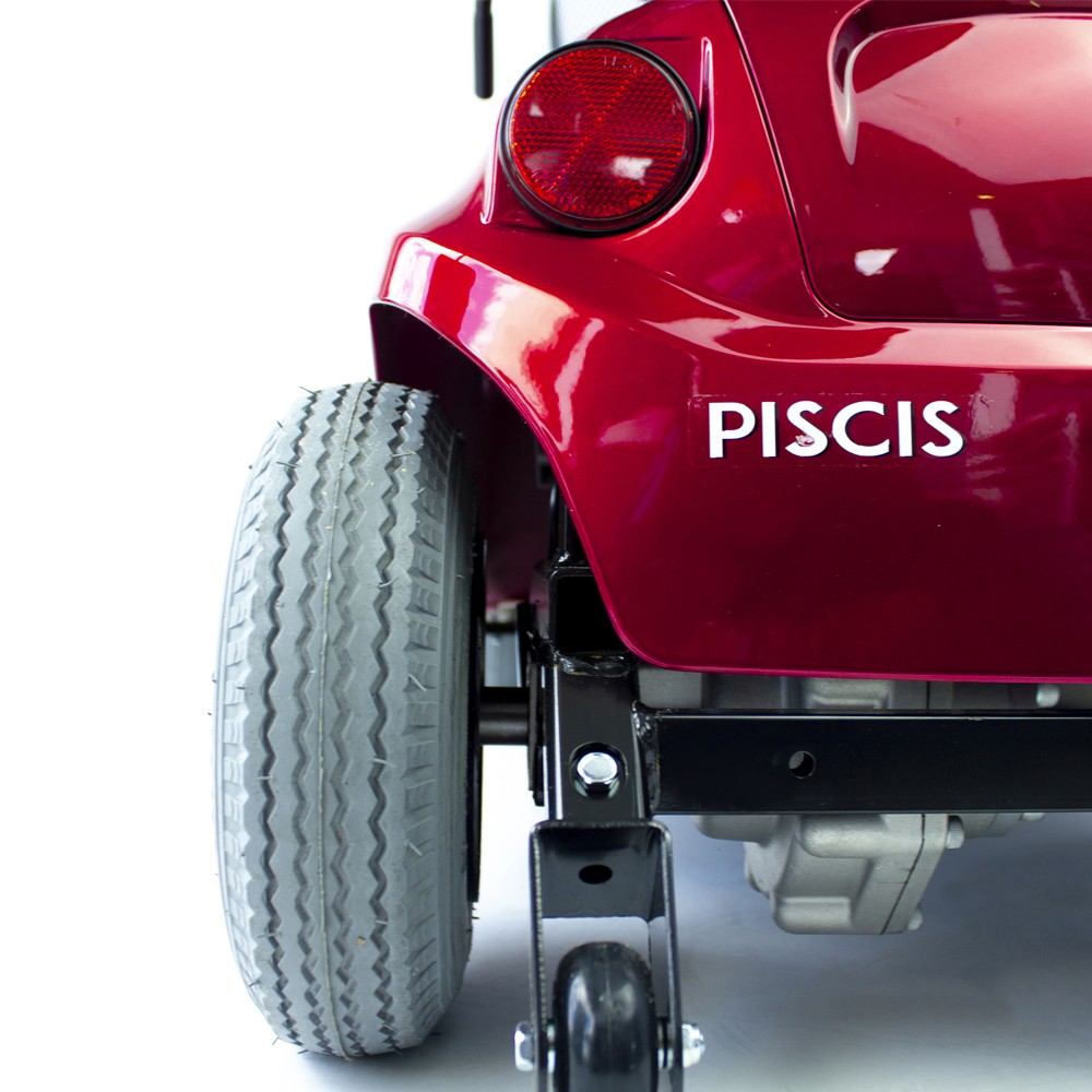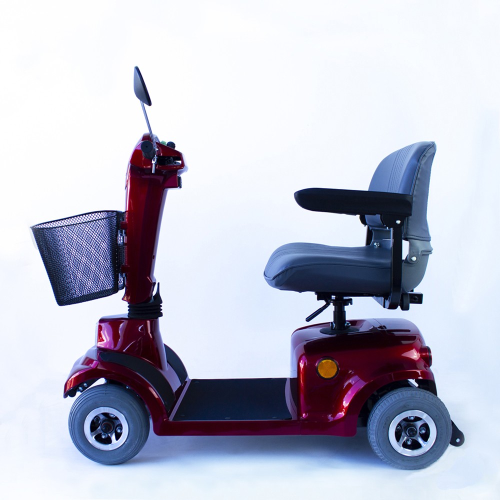 Scooter eléctrico con 4 ruedas, plegable, compacto color rojo “Piscis” para personas con movilidad reducida le ayudará a solucionar los obstáculos y las dificultades que esas personas puedan tener en su día a día a la hora de caminar. Además, este scooter está diseñado para ser utilizado tanto en interiores como en exteriores.