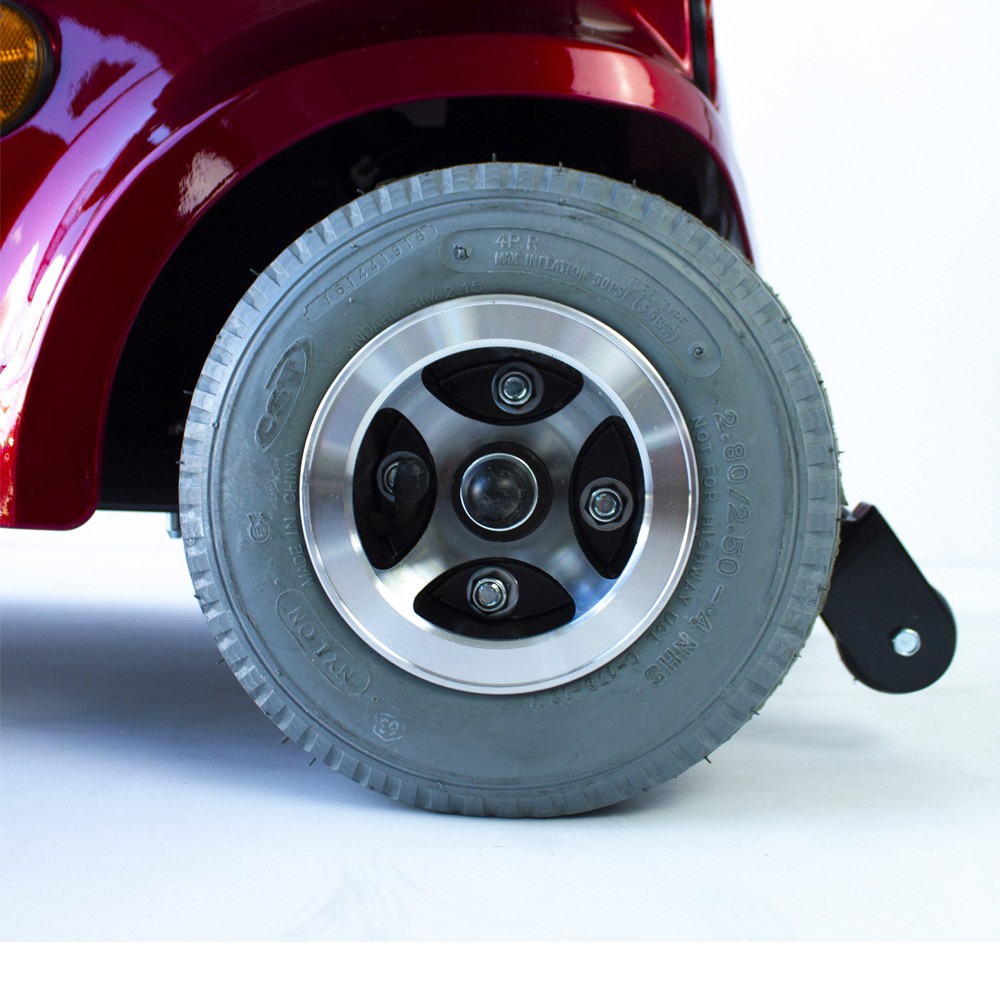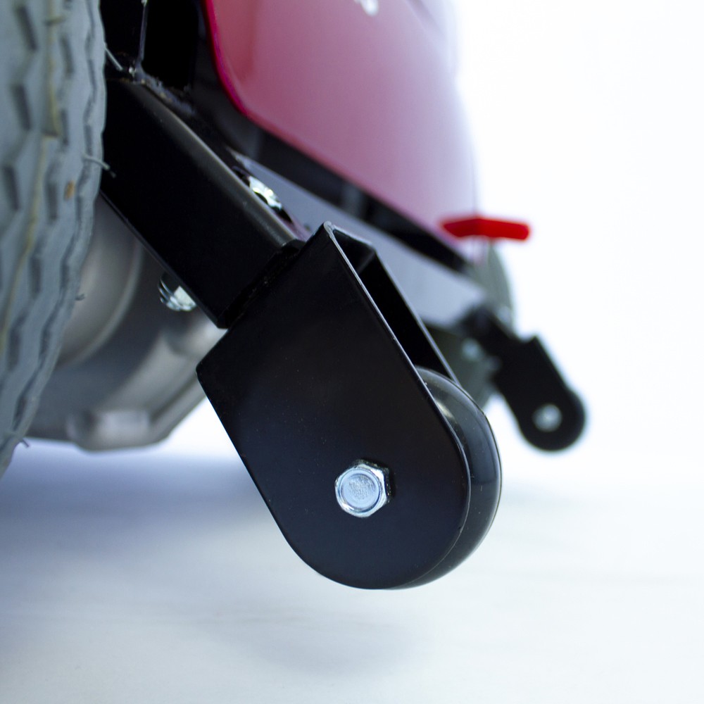 Es un scooter eléctrico muy seguro, incluye ruedas a prueba de pinchazos y ruedas traseras antivuelco, para que, en curvas e inclinaciones, no exista riesgo de caída. Tiene el chasis reforzado para reducir la flexión y el rodaje de las llantas.