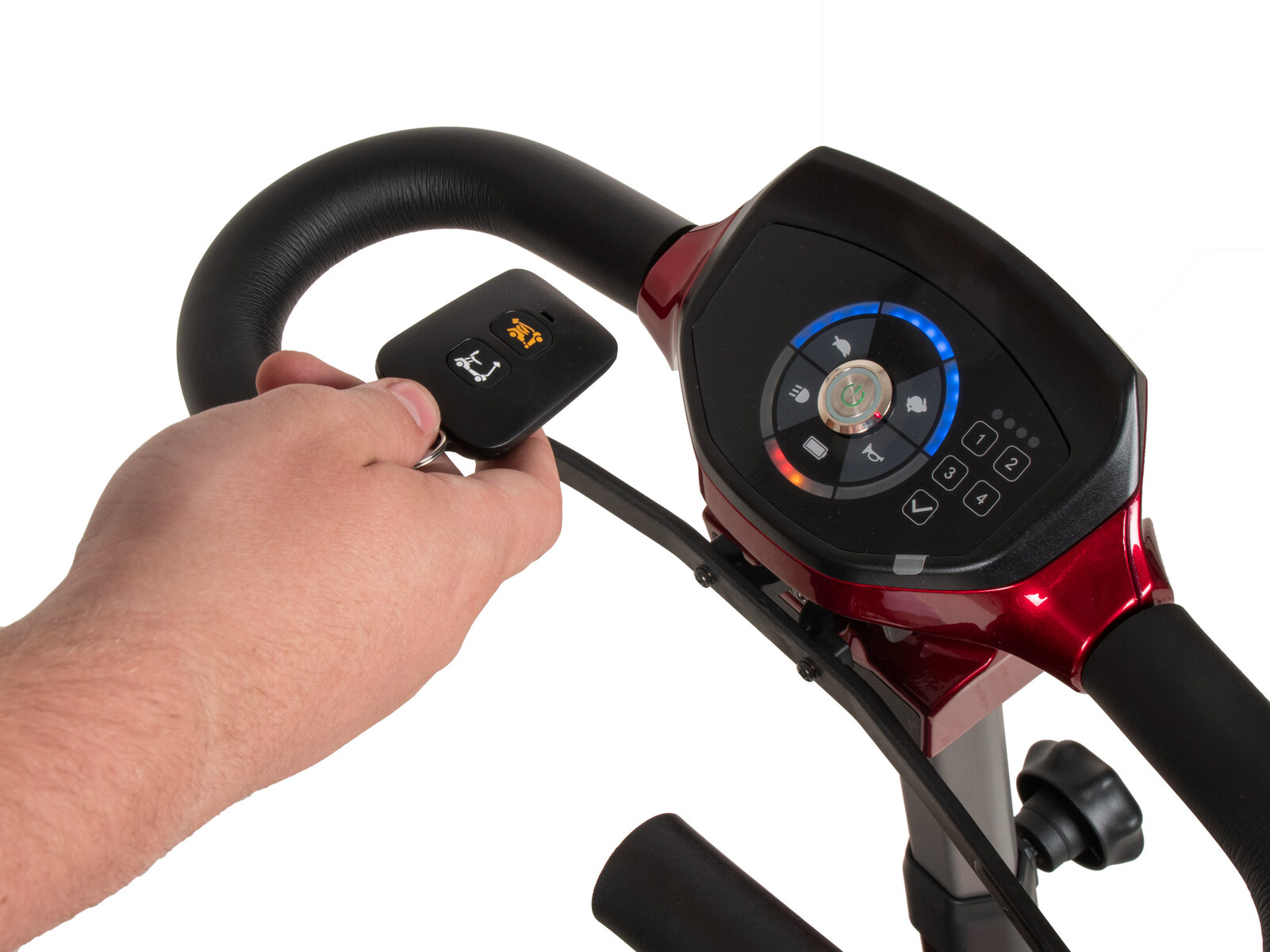 Su panel de control es táctil y el encendido electrónico del scooter es a través de un sensor contactless que permite desbloquearlo con tan solo acercar el mando, o bien introduciendo una contraseña numérica de 4 dígitos. Dicho panel táctil contiene el regulador de velocidad, para aumentarla o reducirla, el claxon, las luces e indica el nivel de la batería.