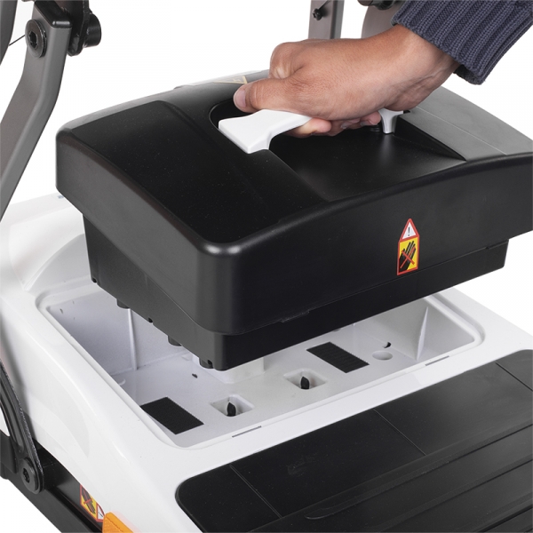 Cuenta con una batería de litio de 12 o de 18 Ah que se puede cargar directamente desde el scooter o extraerla fácilmente para recargarla.