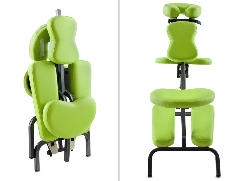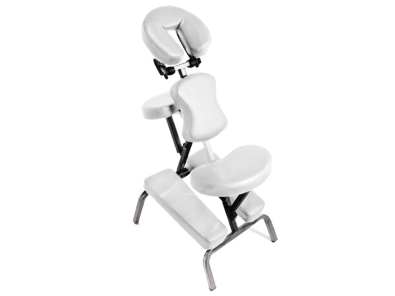 Silla multifuncional para masajes con estructura de metal y tapizado de polipiel. Silla especial para postoperatorio ocular como operaciones de retina.
