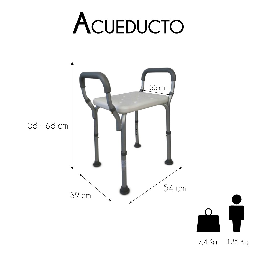 FACILIDADES PARA SU DÍA A DÍA: Gracias al taburete con reposabrazos modelo Acueducto, podrá disfrutar de sus duchas o baños sin esfuerzos y con total seguridad y comodidad.