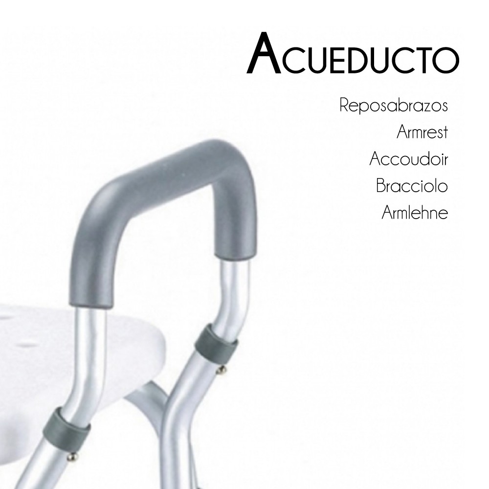 La silla de baño con reposabrazos modelo Acueducto es ideal para que las personas mayores o con problemas de movilidad reducida puedan disfrutar cómodamente y con total seguridad de sus duchas o baños.