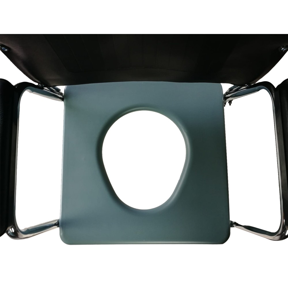 La tapicería de la silla WC está confeccionada en un material acolchado muy fácil de limpiar.