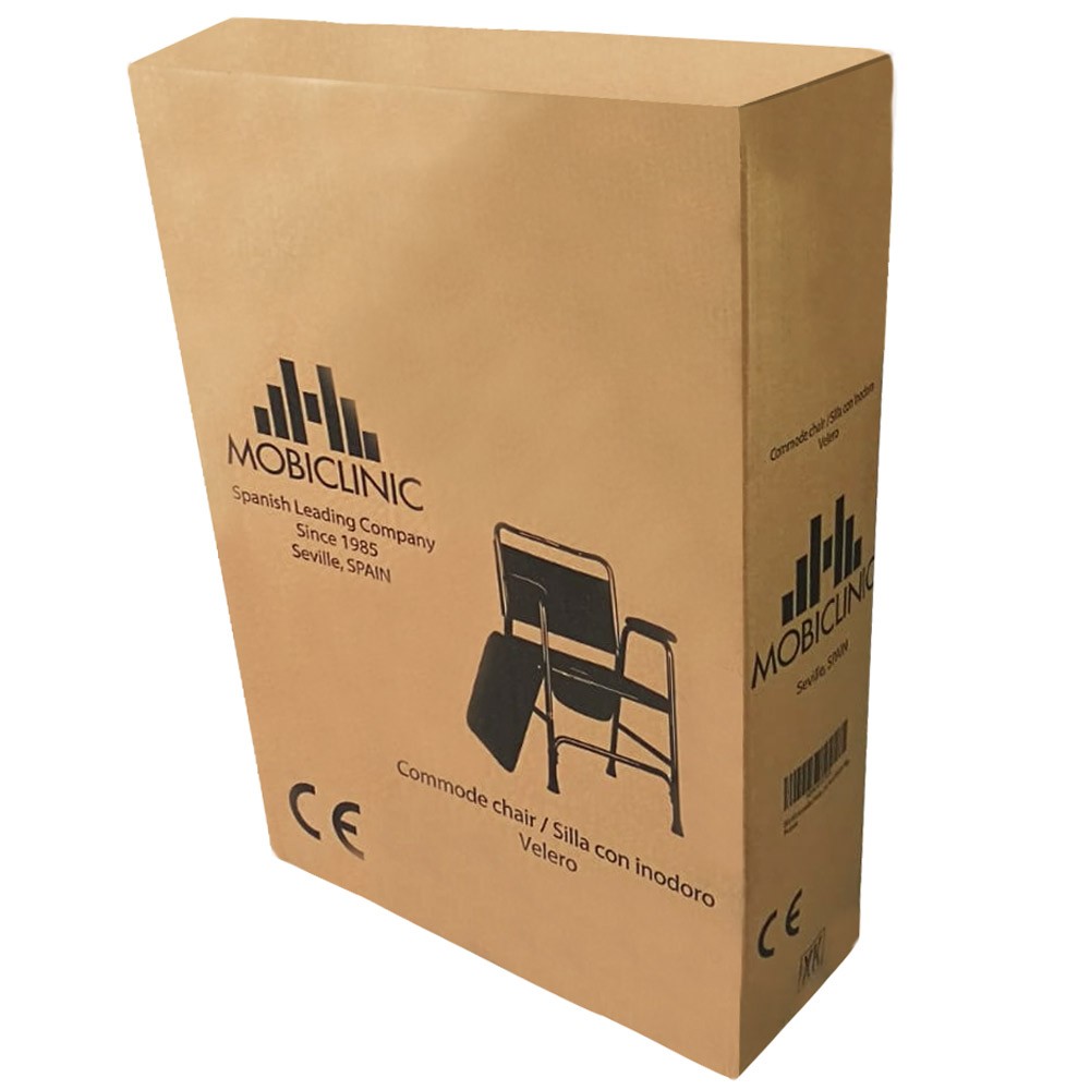 Silla con WC/inodoro con tapa, conteras antideslizantes, asiento y reposabrazos acolchados “Mod. Velero” ideal para personas con problemas de movilidad. Esta silla de baño les ayudará en su día a día y les aliviará en momentos tan importantes como ir al baño.