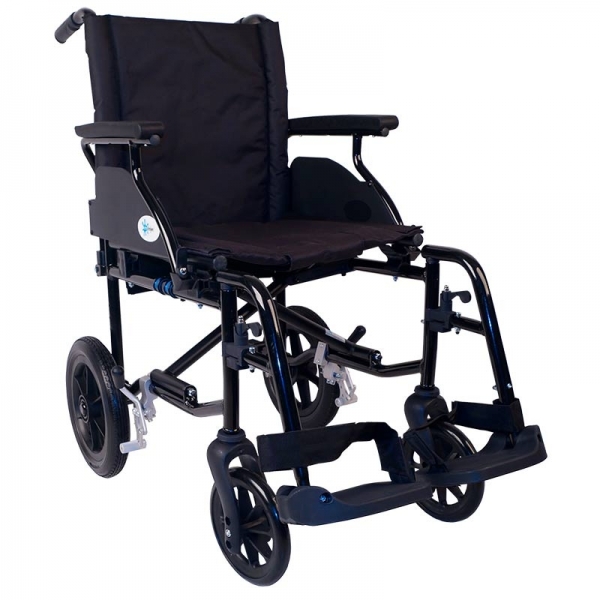 Sus reposabrazos son abatibles hacia atrás, extraíbles en caso de necesitarlo y regulables en altura. Sus reposapiés son desmontables y regulables en altura.