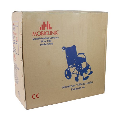 Silla de ruedas de tránsito plegable con reposapiés, respaldo y reposabrazos acolchados, con frenos en manetas, ancho asiento 46 cm | Pirámide